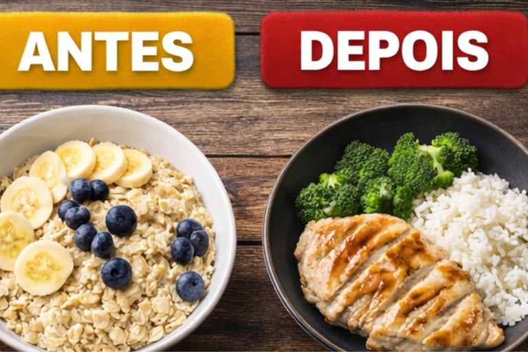 Aqui o foco é recuperação! Combine proteína + carboidrato, como frango com arroz ou um shake proteico com fruta.